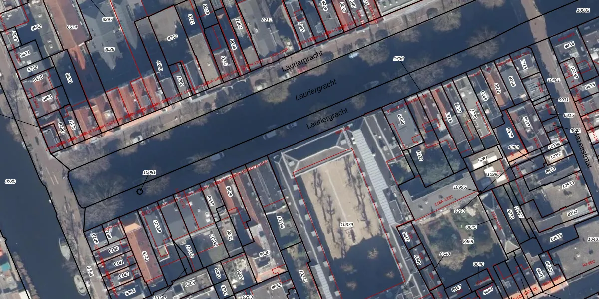 Het perceel waarop Lauriergracht 103-G staat heeft een oppervlakte van 2815 m². Dit is een zeer groot perceel. De perceeloppervlakte wordt geregistreerd door het Kadaster. Gedetailleerde informatie over de maten van dit perceel kunt u vinden in het rapport Kadastrale kaart met maatvoering van Lauriergracht 103-G.