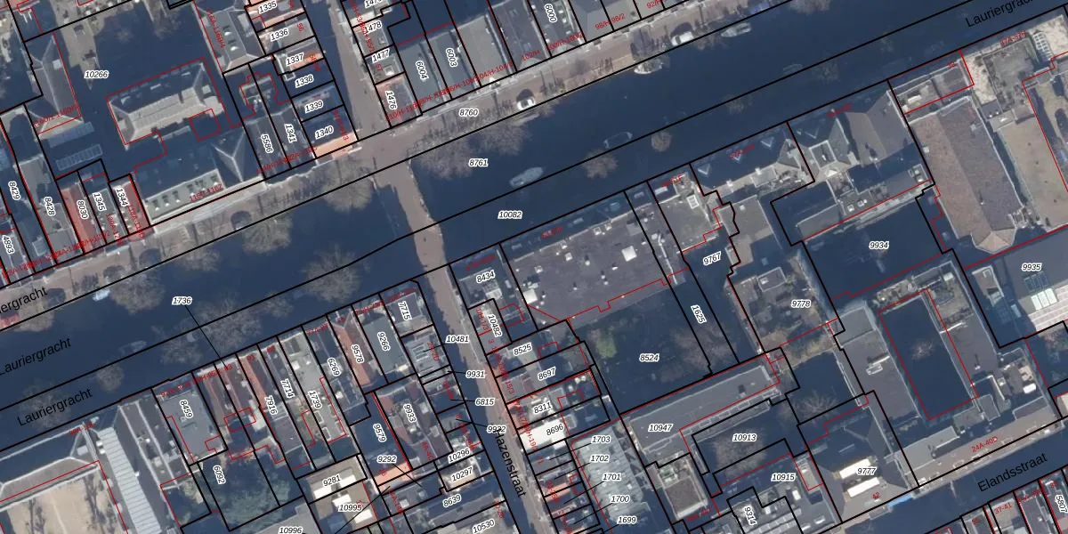 Het perceel waarop Lauriergracht 57-B staat heeft een oppervlakte van 849 m². Dit is een groot perceel. De perceeloppervlakte wordt geregistreerd door het Kadaster. Gedetailleerde informatie over de maten van dit perceel kunt u vinden in het rapport Kadastrale kaart met maatvoering van Lauriergracht 57-B.