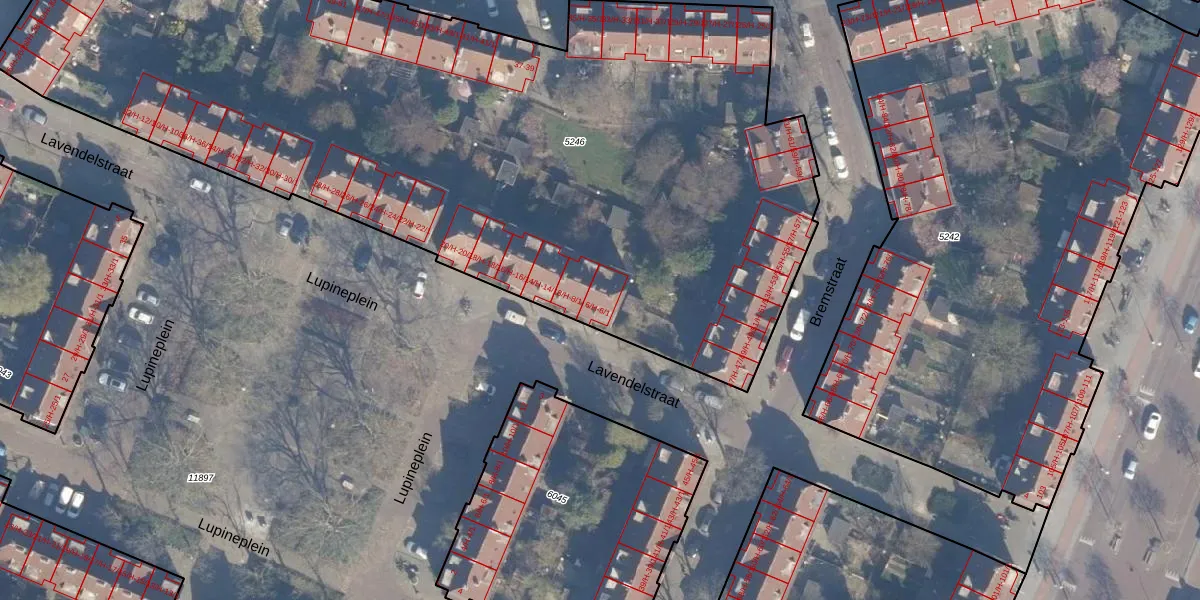 Het perceel waarop Lavendelstraat 6-H staat heeft een oppervlakte van 5900 m². Dit is een zeer groot perceel. De perceeloppervlakte wordt geregistreerd door het Kadaster. Gedetailleerde informatie over de maten van dit perceel kunt u vinden in het rapport Kadastrale kaart met maatvoering van Lavendelstraat 6-H.