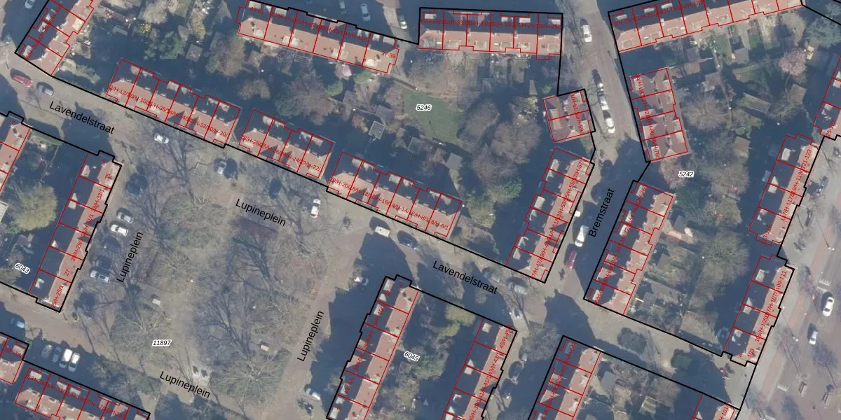 Het perceel waarop Lavendelstraat 8-1 staat heeft een oppervlakte van 5900 m². Dit is een zeer groot perceel. De perceeloppervlakte wordt geregistreerd door het Kadaster. Gedetailleerde informatie over de maten van dit perceel kunt u vinden in het rapport Kadastrale kaart met maatvoering van Lavendelstraat 8-1.