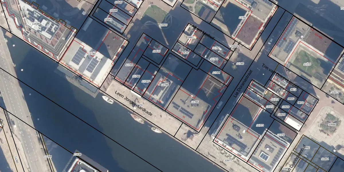 Leen Jongewaardkade 13 is gelegen op kadastraal perceel ASD07K11786. Deze kadastrale aanduiding is uniek en wordt gebruikt door het Kadaster om eigendomsrechten en andere zakelijke rechten vast te leggen. Het perceel maakt onderdeel uit van de kadastrale gemeente Amsterdam.