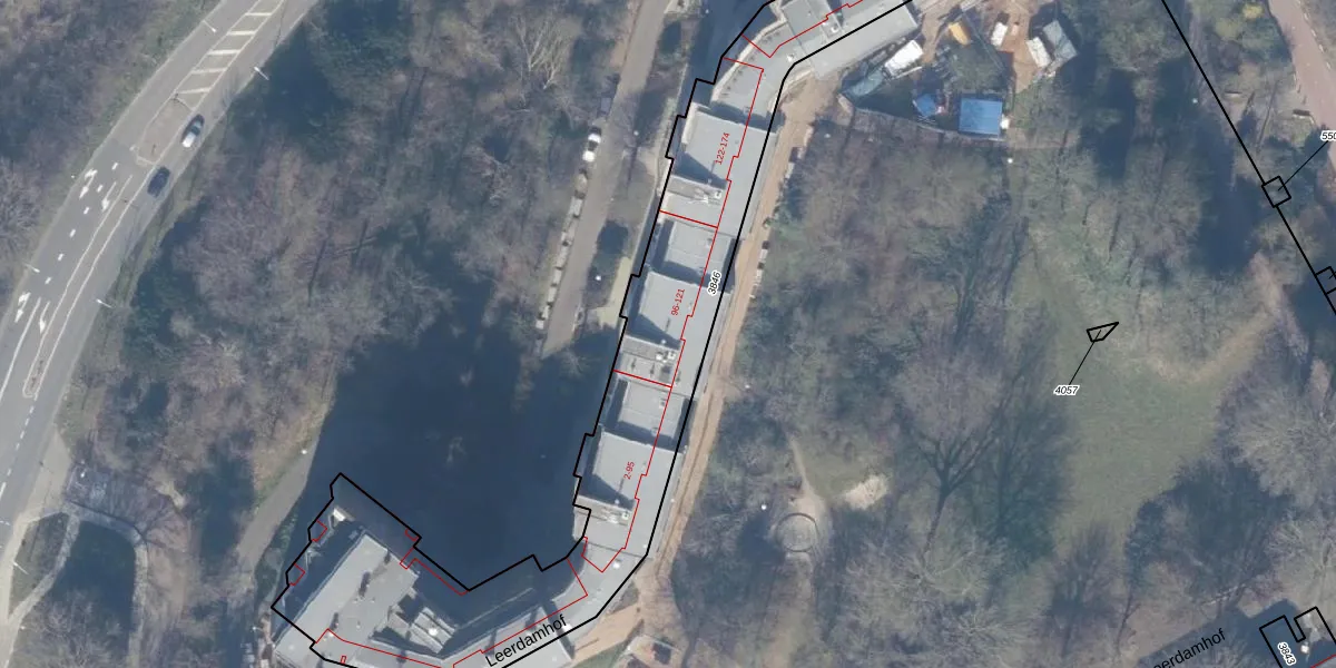 Het perceel waarop Leerdamhof 102 staat heeft een oppervlakte van 2525 m². Dit is een zeer groot perceel. De perceeloppervlakte wordt geregistreerd door het Kadaster. Gedetailleerde informatie over de maten van dit perceel kunt u vinden in het rapport Kadastrale kaart met maatvoering van Leerdamhof 102.