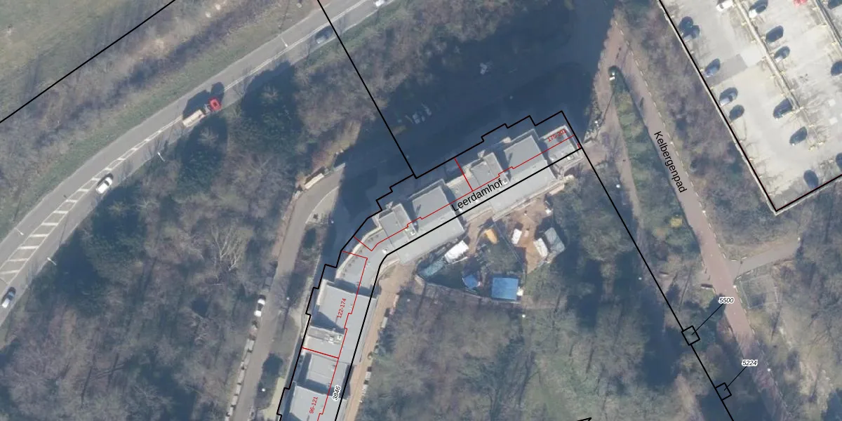 Het perceel waarop Leerdamhof 159 staat heeft een oppervlakte van 2525 m². Dit is een zeer groot perceel. De perceeloppervlakte wordt geregistreerd door het Kadaster. Gedetailleerde informatie over de maten van dit perceel kunt u vinden in het rapport Kadastrale kaart met maatvoering van Leerdamhof 159.