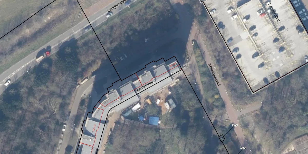 Het perceel waarop Leerdamhof 186 staat heeft een oppervlakte van 2525 m². Dit is een zeer groot perceel. De perceeloppervlakte wordt geregistreerd door het Kadaster. Gedetailleerde informatie over de maten van dit perceel kunt u vinden in het rapport Kadastrale kaart met maatvoering van Leerdamhof 186.