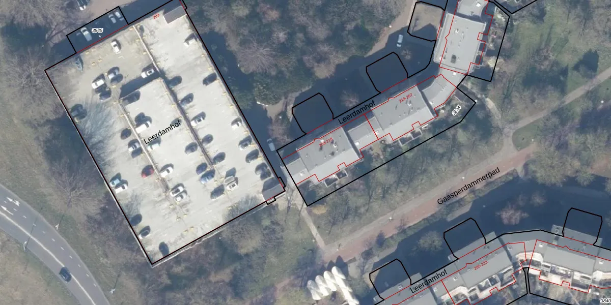Leerdamhof 207 is gelegen op kadastraal perceel WPK02L3844. Deze kadastrale aanduiding is uniek en wordt gebruikt door het Kadaster om eigendomsrechten en andere zakelijke rechten vast te leggen. Het perceel maakt onderdeel uit van de kadastrale gemeente Weesperkarspel.