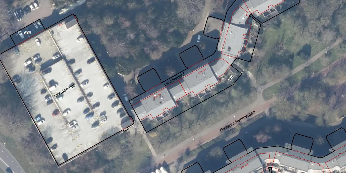 Leerdamhof 218 is gelegen op kadastraal perceel WPK02L3844. Deze kadastrale aanduiding is uniek en wordt gebruikt door het Kadaster om eigendomsrechten en andere zakelijke rechten vast te leggen. Het perceel maakt onderdeel uit van de kadastrale gemeente Weesperkarspel.