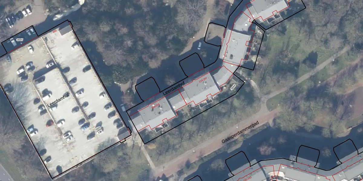 Leerdamhof 219 is gelegen op kadastraal perceel WPK02L3844. Deze kadastrale aanduiding is uniek en wordt gebruikt door het Kadaster om eigendomsrechten en andere zakelijke rechten vast te leggen. Het perceel maakt onderdeel uit van de kadastrale gemeente Weesperkarspel.