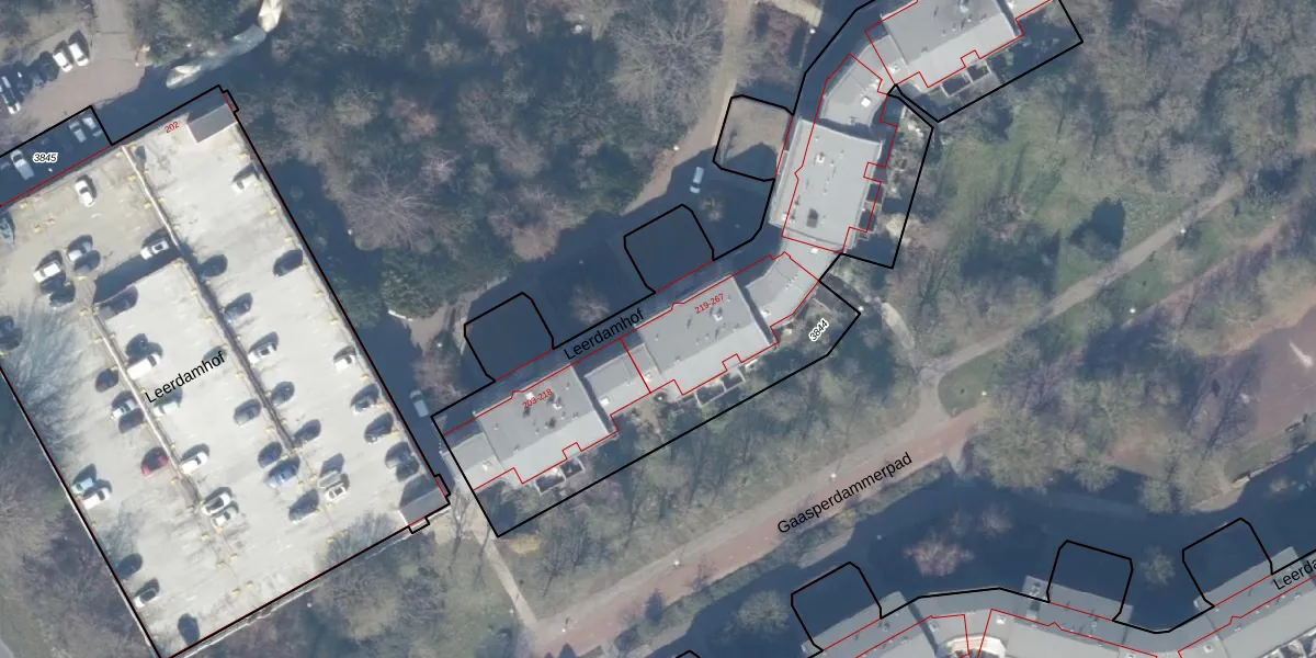 Leerdamhof 222 is gelegen op kadastraal perceel WPK02L3844. Deze kadastrale aanduiding is uniek en wordt gebruikt door het Kadaster om eigendomsrechten en andere zakelijke rechten vast te leggen. Het perceel maakt onderdeel uit van de kadastrale gemeente Weesperkarspel.