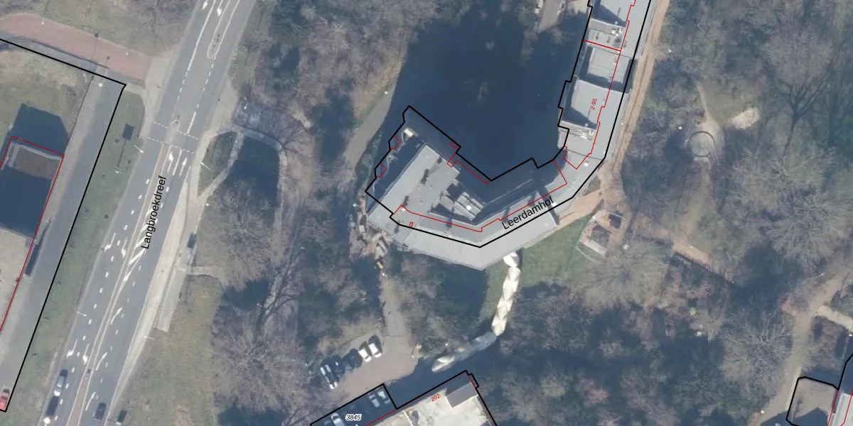 Het perceel waarop Leerdamhof 3 staat heeft een oppervlakte van 2525 m². Dit is een zeer groot perceel. De perceeloppervlakte wordt geregistreerd door het Kadaster. Gedetailleerde informatie over de maten van dit perceel kunt u vinden in het rapport Kadastrale kaart met maatvoering van Leerdamhof 3.