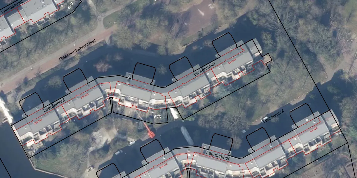 Leerdamhof 321 is gelegen op kadastraal perceel WPK02L3840. Deze kadastrale aanduiding is uniek en wordt gebruikt door het Kadaster om eigendomsrechten en andere zakelijke rechten vast te leggen. Het perceel maakt onderdeel uit van de kadastrale gemeente Weesperkarspel.