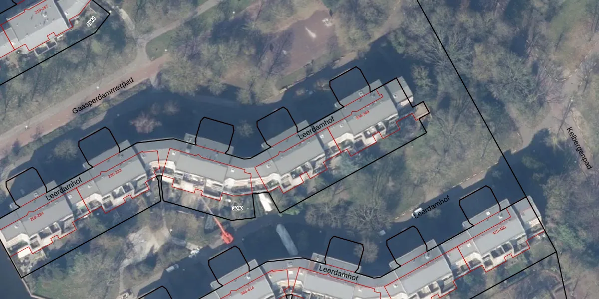 Leerdamhof 328 is gelegen op kadastraal perceel WPK02L3840. Deze kadastrale aanduiding is uniek en wordt gebruikt door het Kadaster om eigendomsrechten en andere zakelijke rechten vast te leggen. Het perceel maakt onderdeel uit van de kadastrale gemeente Weesperkarspel.