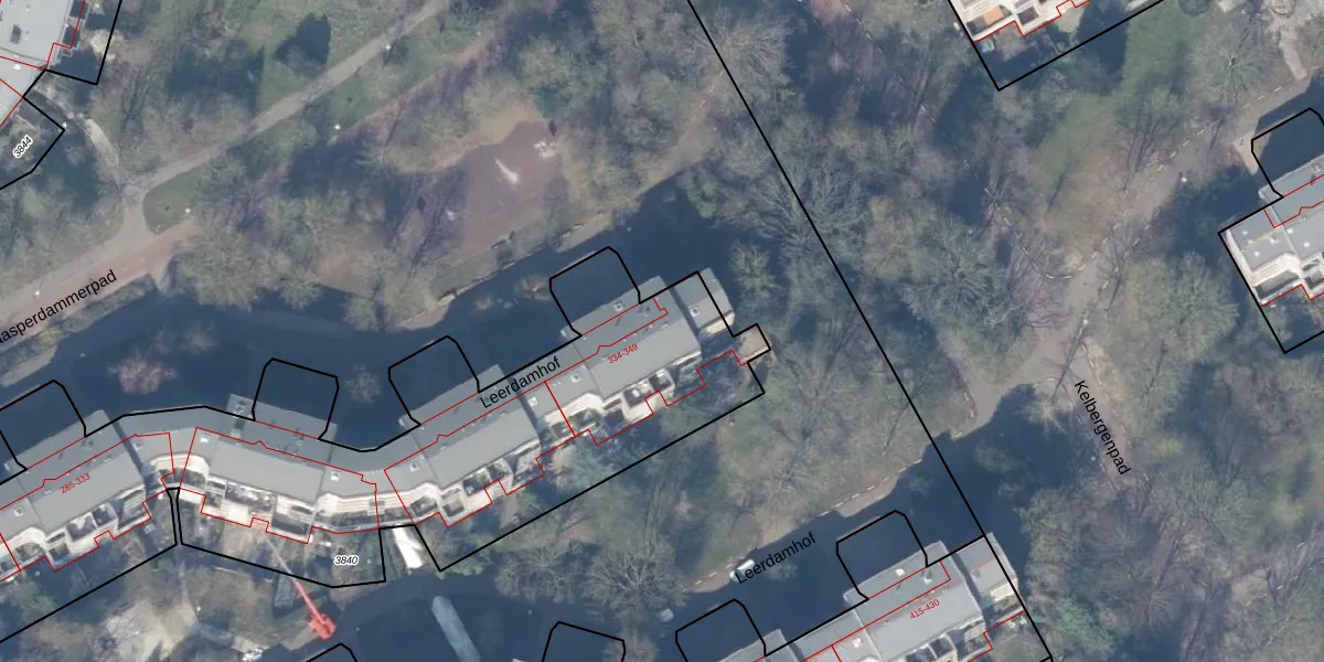 Leerdamhof 345 is gelegen op kadastraal perceel WPK02L3840. Deze kadastrale aanduiding is uniek en wordt gebruikt door het Kadaster om eigendomsrechten en andere zakelijke rechten vast te leggen. Het perceel maakt onderdeel uit van de kadastrale gemeente Weesperkarspel.
