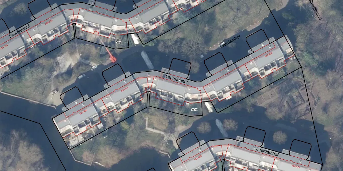 Het perceel waarop Leerdamhof 389 staat heeft een oppervlakte van 3605 m². Dit is een zeer groot perceel. De perceeloppervlakte wordt geregistreerd door het Kadaster. Gedetailleerde informatie over de maten van dit perceel kunt u vinden in het rapport Kadastrale kaart met maatvoering van Leerdamhof 389.