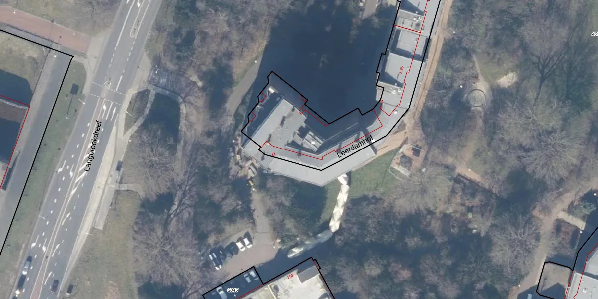 Het perceel waarop Leerdamhof 41 staat heeft een oppervlakte van 2525 m². Dit is een zeer groot perceel. De perceeloppervlakte wordt geregistreerd door het Kadaster. Gedetailleerde informatie over de maten van dit perceel kunt u vinden in het rapport Kadastrale kaart met maatvoering van Leerdamhof 41.