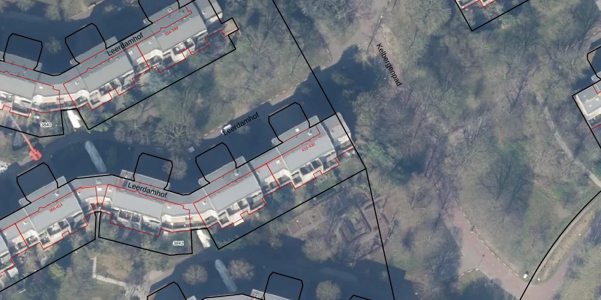 Leerdamhof 422 is gelegen op kadastraal perceel WPK02L3841. Deze kadastrale aanduiding is uniek en wordt gebruikt door het Kadaster om eigendomsrechten en andere zakelijke rechten vast te leggen. Het perceel maakt onderdeel uit van de kadastrale gemeente Weesperkarspel.