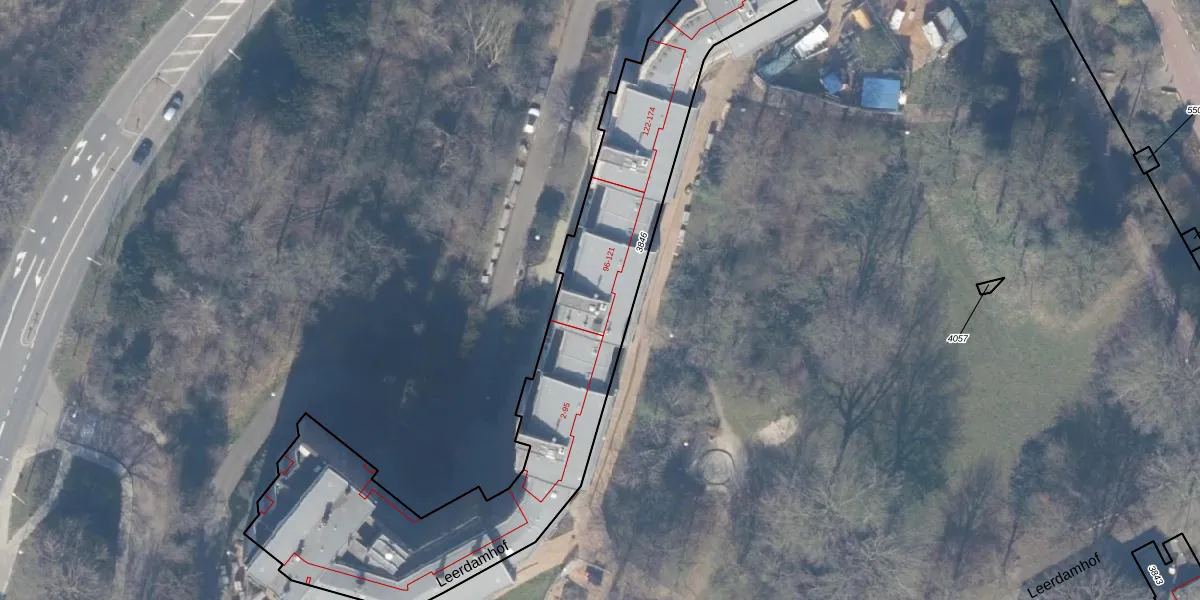 Het perceel waarop Leerdamhof 98 staat heeft een oppervlakte van 2525 m². Dit is een zeer groot perceel. De perceeloppervlakte wordt geregistreerd door het Kadaster. Gedetailleerde informatie over de maten van dit perceel kunt u vinden in het rapport Kadastrale kaart met maatvoering van Leerdamhof 98.