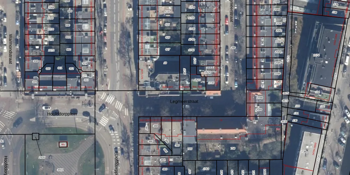 Legmeerstraat 82-3 is gelegen op kadastraal perceel STN02O18. Deze kadastrale aanduiding is uniek en wordt gebruikt door het Kadaster om eigendomsrechten en andere zakelijke rechten vast te leggen. Het perceel maakt onderdeel uit van de kadastrale gemeente Sloten Noord-Holland.