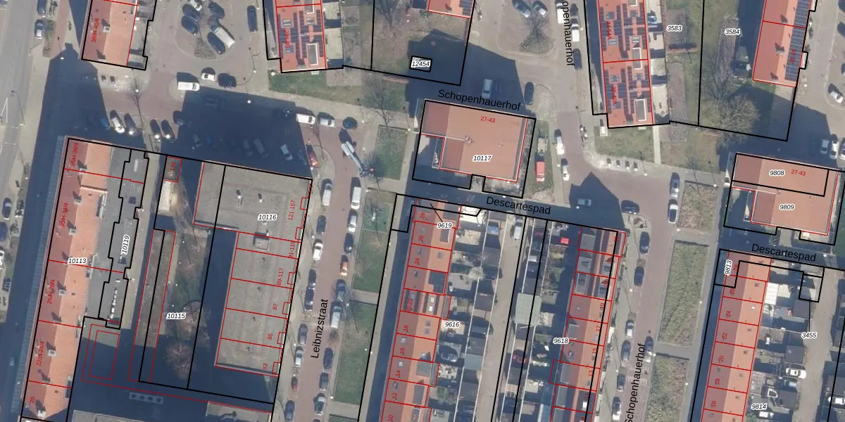 Het perceel waarop Leibnizstraat 28-A staat heeft een oppervlakte van 2162 m². Dit is een zeer groot perceel. De perceeloppervlakte wordt geregistreerd door het Kadaster. Gedetailleerde informatie over de maten van dit perceel kunt u vinden in het rapport Kadastrale kaart met maatvoering van Leibnizstraat 28-A.