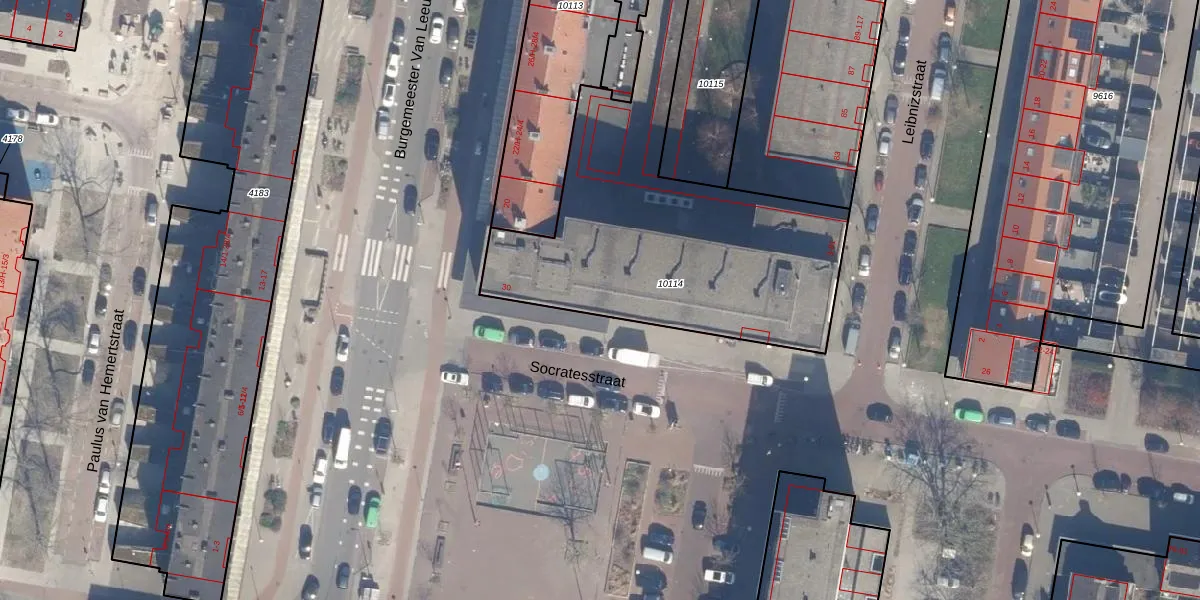 Leibnizstraat 5 is gelegen op kadastraal perceel STN02D10114. Deze kadastrale aanduiding is uniek en wordt gebruikt door het Kadaster om eigendomsrechten en andere zakelijke rechten vast te leggen. Het perceel maakt onderdeel uit van de kadastrale gemeente Sloten Noord-Holland.