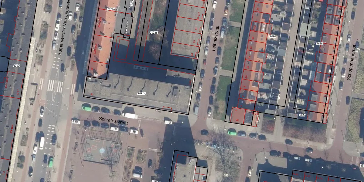 Leibnizstraat 73 is gelegen op kadastraal perceel STN02D10114. Deze kadastrale aanduiding is uniek en wordt gebruikt door het Kadaster om eigendomsrechten en andere zakelijke rechten vast te leggen. Het perceel maakt onderdeel uit van de kadastrale gemeente Sloten Noord-Holland.