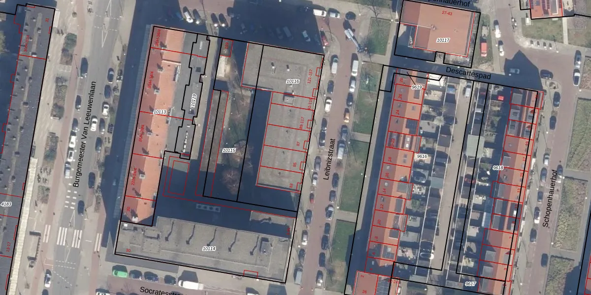 Leibnizstraat 87 is gelegen op kadastraal perceel STN02D10116. Deze kadastrale aanduiding is uniek en wordt gebruikt door het Kadaster om eigendomsrechten en andere zakelijke rechten vast te leggen. Het perceel maakt onderdeel uit van de kadastrale gemeente Sloten Noord-Holland.
