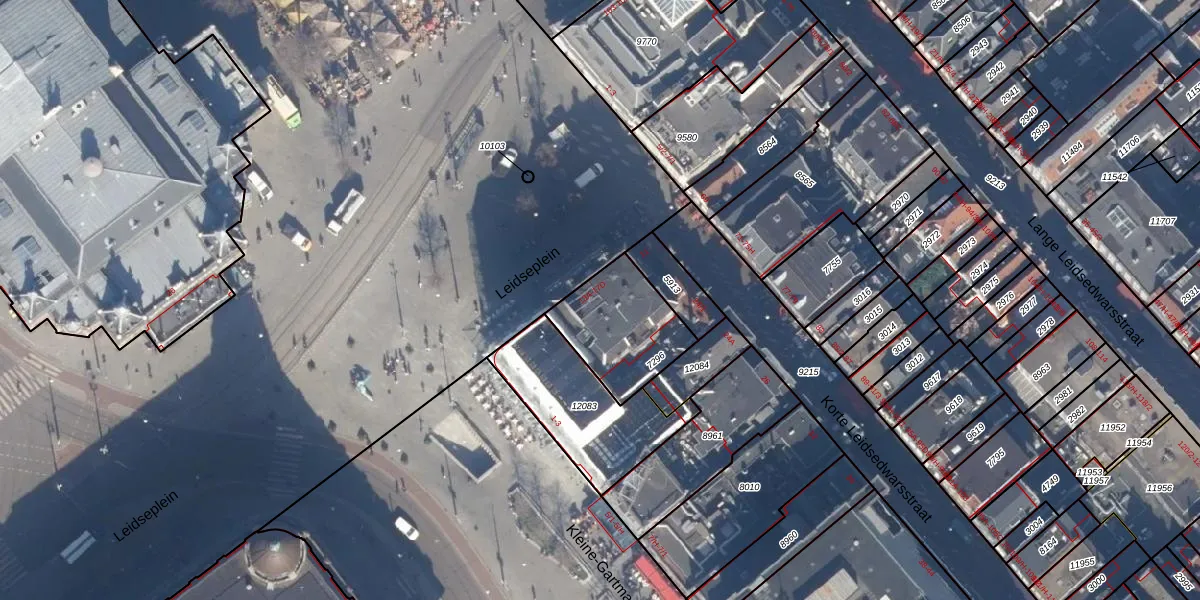 Het perceel waarop Leidseplein 15-B staat heeft een oppervlakte van 332 m². Dit is een groot perceel. De perceeloppervlakte wordt geregistreerd door het Kadaster. Gedetailleerde informatie over de maten van dit perceel kunt u vinden in het rapport Kadastrale kaart met maatvoering van Leidseplein 15-B.