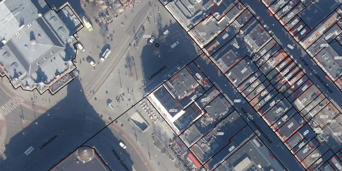 Het perceel waarop Leidseplein 17-A staat heeft een oppervlakte van 332 m². Dit is een groot perceel. De perceeloppervlakte wordt geregistreerd door het Kadaster. Gedetailleerde informatie over de maten van dit perceel kunt u vinden in het rapport Kadastrale kaart met maatvoering van Leidseplein 17-A.