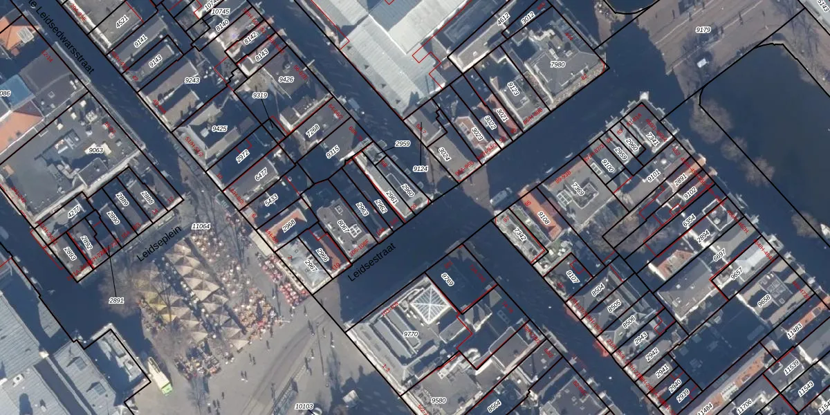 Leidsestraat 100 is gelegen op kadastraal perceel ASD03E2960. Deze kadastrale aanduiding is uniek en wordt gebruikt door het Kadaster om eigendomsrechten en andere zakelijke rechten vast te leggen. Het perceel maakt onderdeel uit van de kadastrale gemeente Amsterdam.