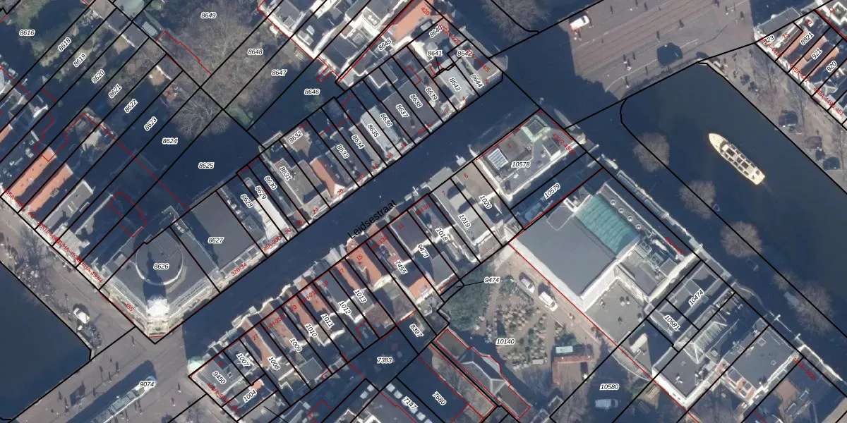 Leidsestraat 9-H is gelegen op kadastraal perceel ASD06I1018. Deze kadastrale aanduiding is uniek en wordt gebruikt door het Kadaster om eigendomsrechten en andere zakelijke rechten vast te leggen. Het perceel maakt onderdeel uit van de kadastrale gemeente Amsterdam.