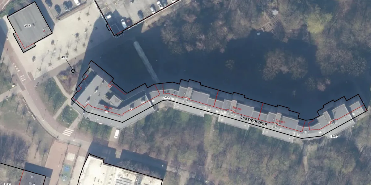 Leksmondhof 263 is gelegen op kadastraal perceel WPK02L3830. Deze kadastrale aanduiding is uniek en wordt gebruikt door het Kadaster om eigendomsrechten en andere zakelijke rechten vast te leggen. Het perceel maakt onderdeel uit van de kadastrale gemeente Weesperkarspel.