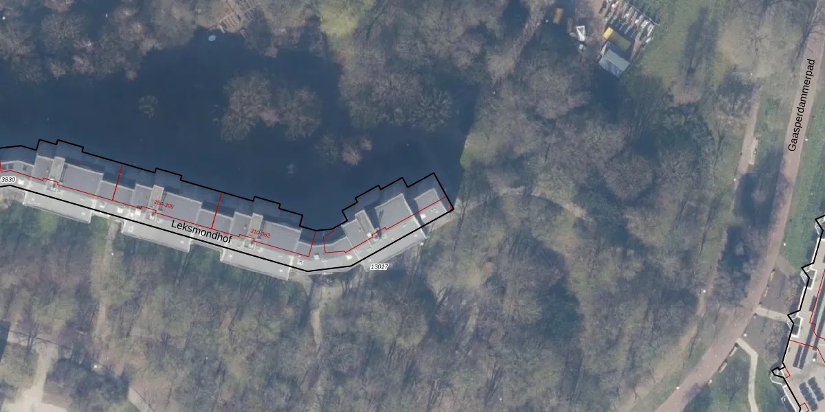 Leksmondhof 358 is gelegen op kadastraal perceel WPK02L3830. Deze kadastrale aanduiding is uniek en wordt gebruikt door het Kadaster om eigendomsrechten en andere zakelijke rechten vast te leggen. Het perceel maakt onderdeel uit van de kadastrale gemeente Weesperkarspel.
