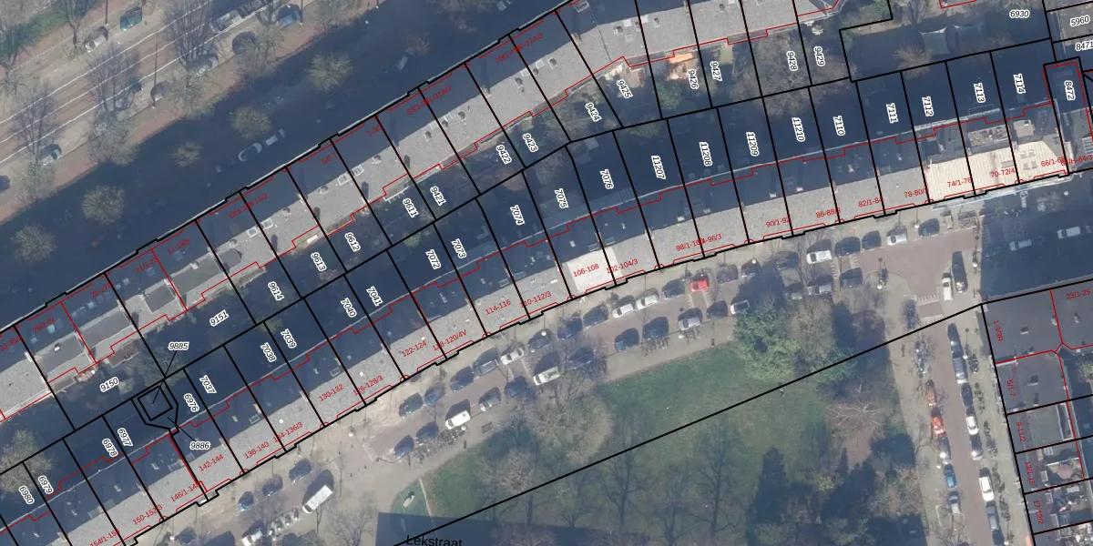Lekstraat 110 is gelegen op kadastraal perceel ASD18V7074. Deze kadastrale aanduiding is uniek en wordt gebruikt door het Kadaster om eigendomsrechten en andere zakelijke rechten vast te leggen. Het perceel maakt onderdeel uit van de kadastrale gemeente Amsterdam.