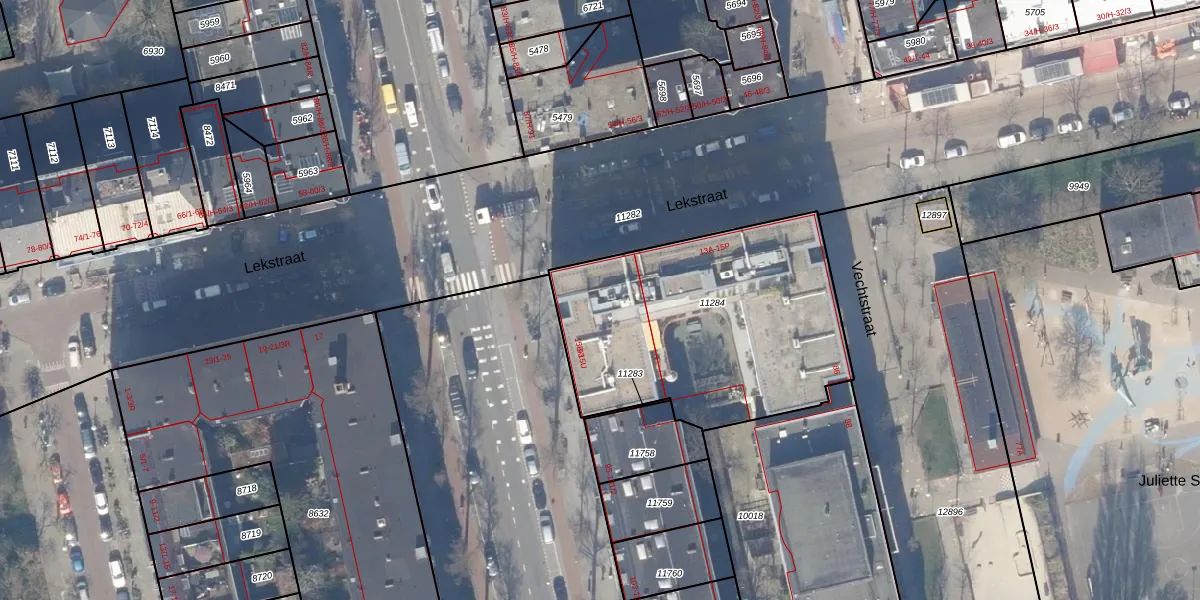 Lekstraat 15-B is gelegen op kadastraal perceel ASD18V11284. Deze kadastrale aanduiding is uniek en wordt gebruikt door het Kadaster om eigendomsrechten en andere zakelijke rechten vast te leggen. Het perceel maakt onderdeel uit van de kadastrale gemeente Amsterdam.