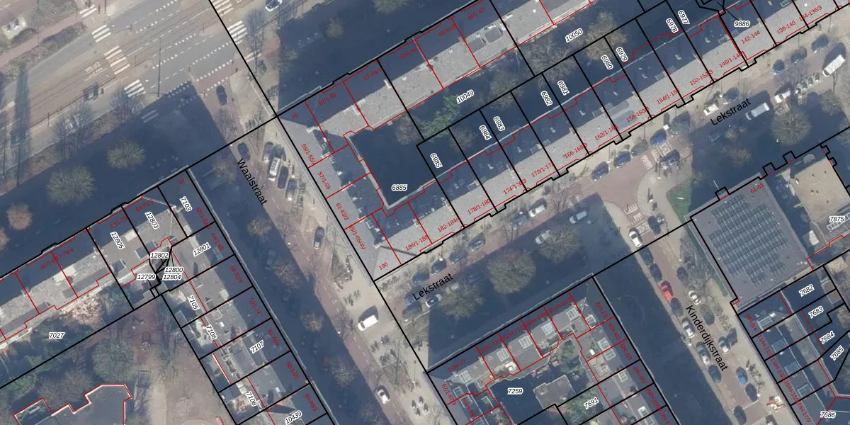 Lekstraat 184-3 is gelegen op kadastraal perceel ASD18V6885. Deze kadastrale aanduiding is uniek en wordt gebruikt door het Kadaster om eigendomsrechten en andere zakelijke rechten vast te leggen. Het perceel maakt onderdeel uit van de kadastrale gemeente Amsterdam.