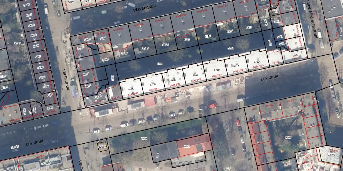 Lekstraat 28-3 is gelegen op kadastraal perceel ASD18V5707. Deze kadastrale aanduiding is uniek en wordt gebruikt door het Kadaster om eigendomsrechten en andere zakelijke rechten vast te leggen. Het perceel maakt onderdeel uit van de kadastrale gemeente Amsterdam.