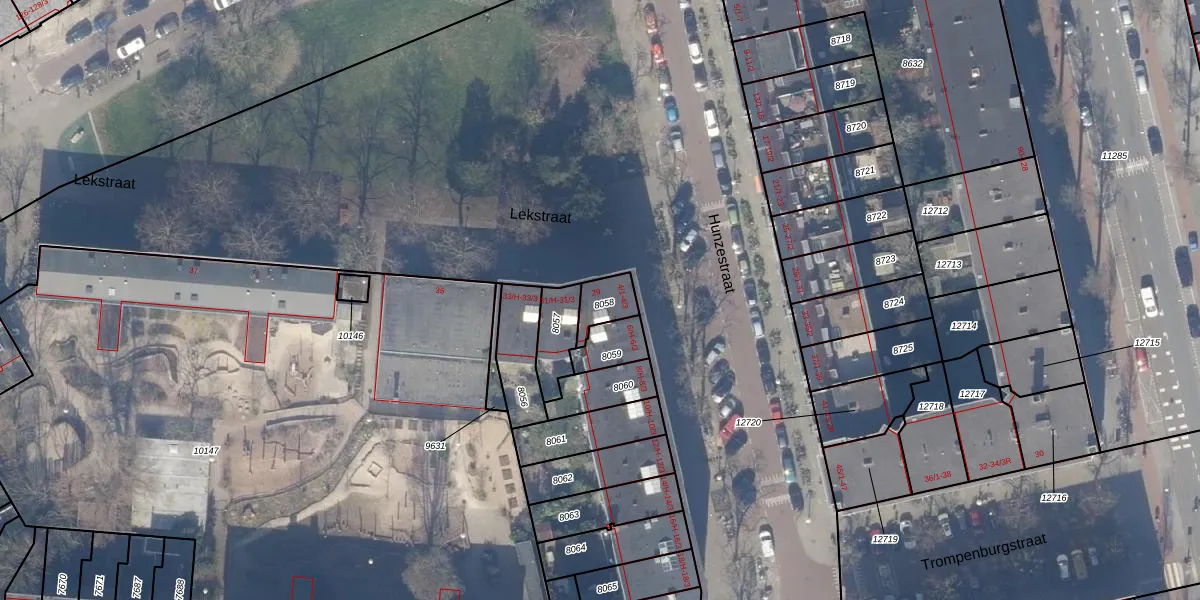 Lekstraat 29 is gelegen op kadastraal perceel ASD18V8058. Deze kadastrale aanduiding is uniek en wordt gebruikt door het Kadaster om eigendomsrechten en andere zakelijke rechten vast te leggen. Het perceel maakt onderdeel uit van de kadastrale gemeente Amsterdam.