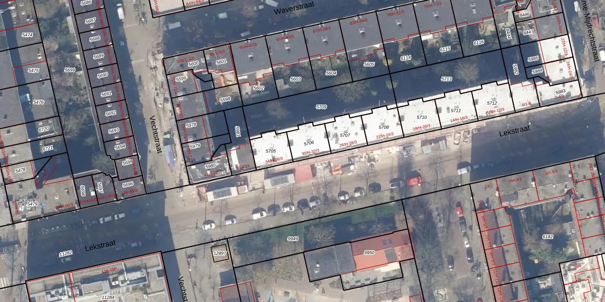 Lekstraat 32-3 is gelegen op kadastraal perceel ASD18V5706. Deze kadastrale aanduiding is uniek en wordt gebruikt door het Kadaster om eigendomsrechten en andere zakelijke rechten vast te leggen. Het perceel maakt onderdeel uit van de kadastrale gemeente Amsterdam.