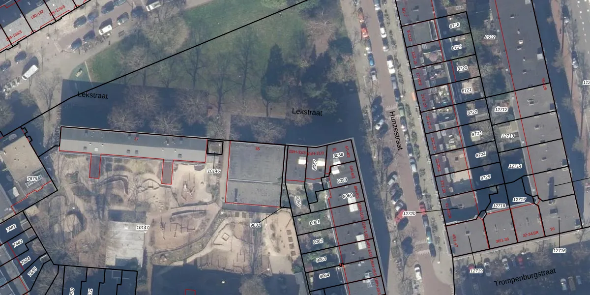 Lekstraat 33-3 is gelegen op kadastraal perceel ASD18V8056. Deze kadastrale aanduiding is uniek en wordt gebruikt door het Kadaster om eigendomsrechten en andere zakelijke rechten vast te leggen. Het perceel maakt onderdeel uit van de kadastrale gemeente Amsterdam.