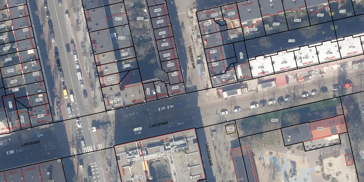 Het perceel waarop Lekstraat 46 staat heeft een oppervlakte van 66 m². Dit is een klein perceel. De perceeloppervlakte wordt geregistreerd door het Kadaster. Gedetailleerde informatie over de maten van dit perceel kunt u vinden in het rapport Kadastrale kaart met maatvoering van Lekstraat 46.