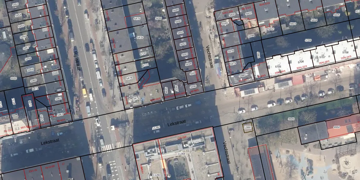 Het perceel waarop Lekstraat 50-H staat heeft een oppervlakte van 61 m². Dit is een klein perceel. De perceeloppervlakte wordt geregistreerd door het Kadaster. Gedetailleerde informatie over de maten van dit perceel kunt u vinden in het rapport Kadastrale kaart met maatvoering van Lekstraat 50-H.