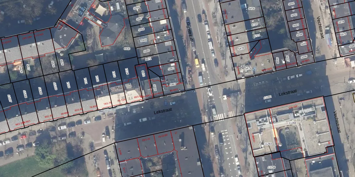 Lekstraat 58 is gelegen op kadastraal perceel ASD18V5963. Deze kadastrale aanduiding is uniek en wordt gebruikt door het Kadaster om eigendomsrechten en andere zakelijke rechten vast te leggen. Het perceel maakt onderdeel uit van de kadastrale gemeente Amsterdam.