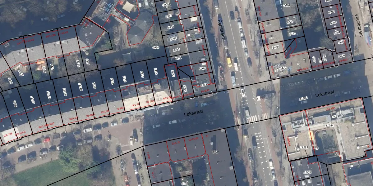 Het perceel waarop Lekstraat 62-1 staat heeft een oppervlakte van 90 m². Dit is een klein perceel. De perceeloppervlakte wordt geregistreerd door het Kadaster. Gedetailleerde informatie over de maten van dit perceel kunt u vinden in het rapport Kadastrale kaart met maatvoering van Lekstraat 62-1.