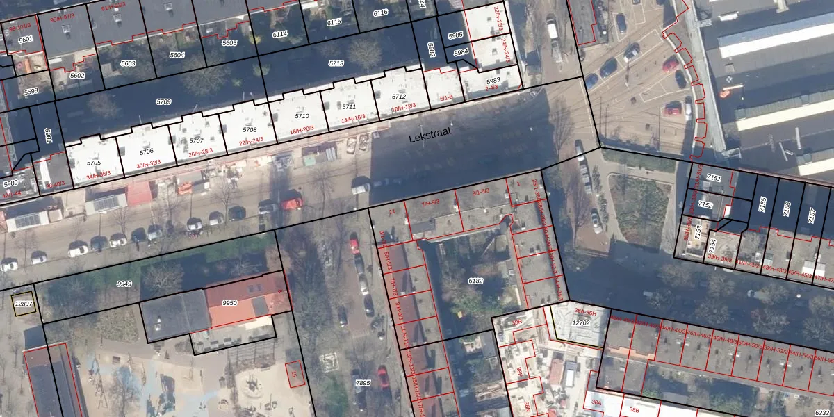 Lekstraat 9-3 is gelegen op kadastraal perceel ASD18V6182. Deze kadastrale aanduiding is uniek en wordt gebruikt door het Kadaster om eigendomsrechten en andere zakelijke rechten vast te leggen. Het perceel maakt onderdeel uit van de kadastrale gemeente Amsterdam.