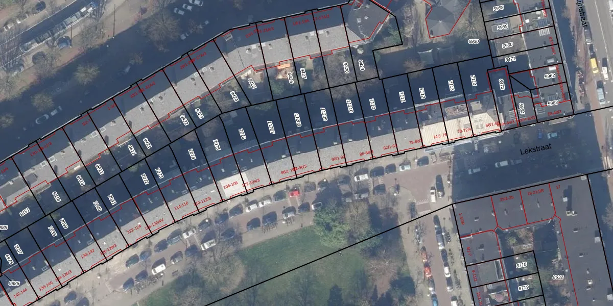 Lekstraat 94 is gelegen op kadastraal perceel ASD18V11208. Deze kadastrale aanduiding is uniek en wordt gebruikt door het Kadaster om eigendomsrechten en andere zakelijke rechten vast te leggen. Het perceel maakt onderdeel uit van de kadastrale gemeente Amsterdam.