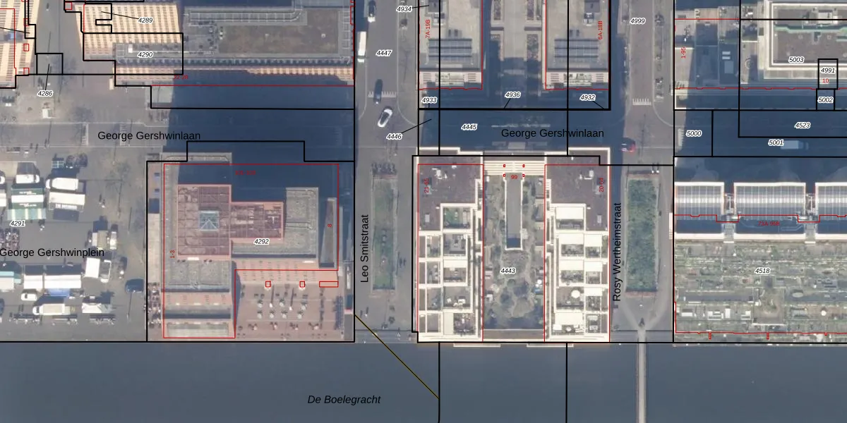 Het perceel waarop het adres ligt is ASD30-AK-4443. De afkorting 'ASD30' staat voor kadastrale gemeente Amsterdam. De gemiddelde perceeloppervlakte in de kadastrale gemeente Amsterdam is 1333,53 m². Dit perceel is met zijn 2675 m² dus groter dan gemiddeld. De grootste perceeloppervlakte in de kadastrale gemeente is 22,2 ha. De kleinste oppervlakte bedraagt 0 m². Op het perceel zijn 43 adressen aanwezig. In de Basisregistratie Kadaster (BRK) werden de grenzen van het perceel geregistreerd op 04-12-2018.