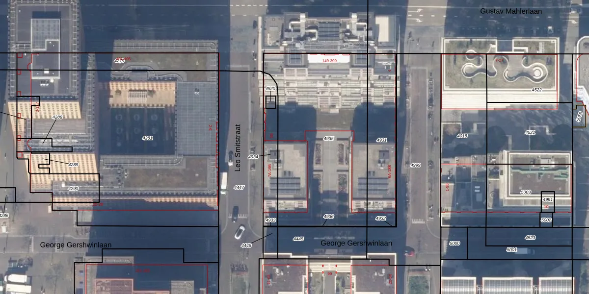 Leo Smitstraat 7-A is gelegen op kadastraal perceel ASD30AK4935. Deze kadastrale aanduiding is uniek en wordt gebruikt door het Kadaster om eigendomsrechten en andere zakelijke rechten vast te leggen. Het perceel maakt onderdeel uit van de kadastrale gemeente Amsterdam.
