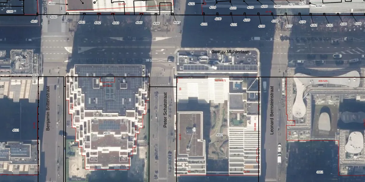 Het adres ligt op het perceel ASD30-AK-4561, dat zich in de kadastrale gemeente Amsterdam bevindt. De oppervlakte van het perceel is 2655 m². Dat is groter dan gemiddeld in Amsterdam, waar de gemiddelde perceeloppervlakte op 1333,53 m² ligt. De grootste perceeloppervlakte in de kadastrale gemeente is 22,2 ha. De kleinste oppervlakte bedraagt 0 m². Op het perceel zijn 180 adressen aanwezig. De huidige grenzen van het perceel zijn digitaal in de Basisregistratie Kadaster (BRK) geregistreerd op 30-10-2018.