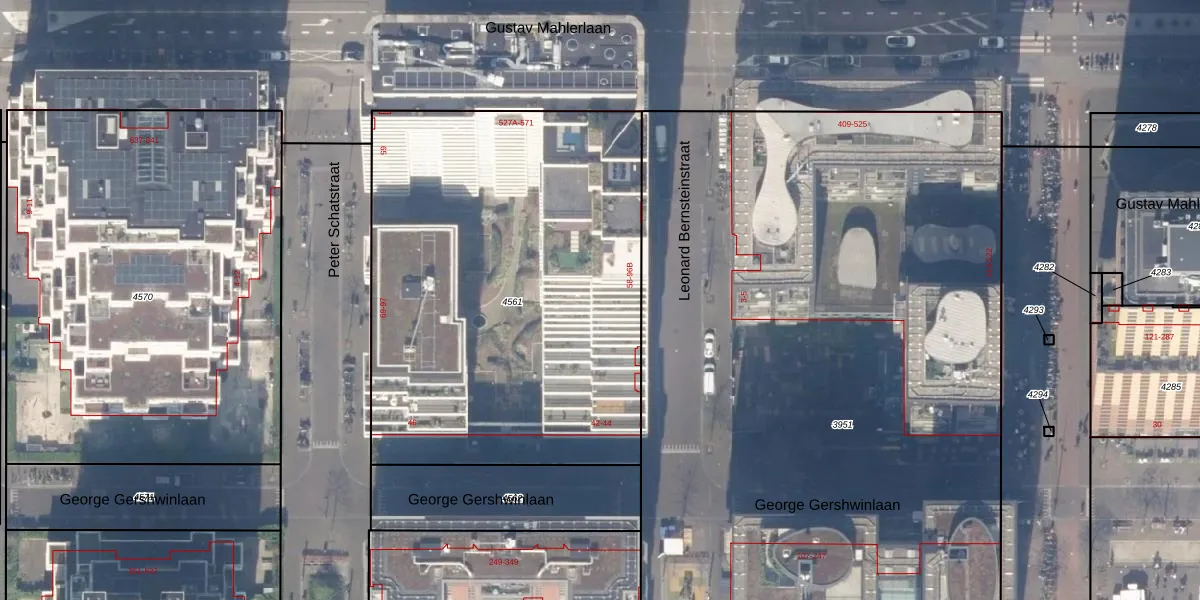 Het adres ligt op het perceel ASD30-AK-4561, dat zich in de kadastrale gemeente Amsterdam bevindt. De oppervlakte van het perceel is 2655 m². Dat is groter dan gemiddeld in Amsterdam, waar de gemiddelde perceeloppervlakte op 1333,53 m² ligt. Het kleinste perceel in de kadastrale gemeente is 0 m² groot. De grootste perceeloppervlakte is 22,2 ha. Er zijn 180 adressen aanwezig op het perceel. In de Basisregistratie Kadaster (BRK) werden de grenzen van het perceel geregistreerd op 30-10-2018.