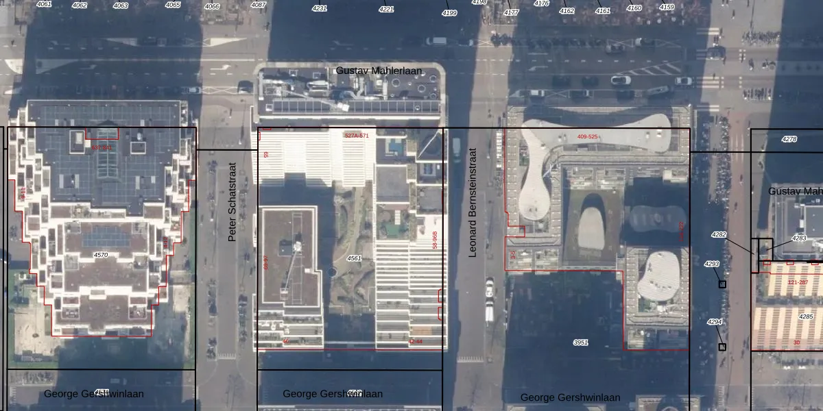 Het adres ligt op het perceel ASD30-AK-4561, dat zich in de kadastrale gemeente Amsterdam bevindt. De oppervlakte van het perceel is 2655 m². Dat is groter dan gemiddeld in Amsterdam, waar de gemiddelde perceeloppervlakte op 1333,53 m² ligt. Het kleinste perceel in de kadastrale gemeente is 0 m² groot. De grootste perceeloppervlakte is 22,2 ha. Op het perceel zijn 180 adressen aanwezig. De laatste wijziging in het de Basisregistratie Kadaster (BRK) was op 30-10-2018.