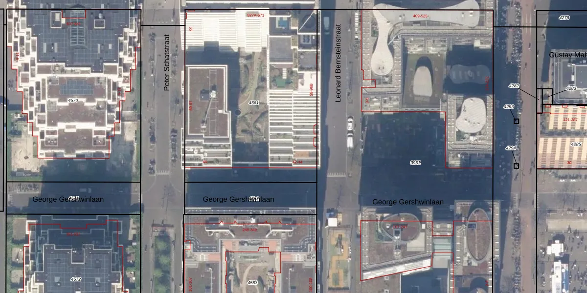 Het adres ligt op het perceel ASD30-AK-4561, dat zich in de kadastrale gemeente Amsterdam bevindt. De oppervlakte van het perceel is 2655 m². Dat is groter dan gemiddeld in Amsterdam, waar de gemiddelde perceeloppervlakte op 1333,88 m² ligt. Het grootste perceel in de kadastrale gemeente is 22,2 ha. Het kleinste perceel heeft een oppervlakte van 0 m². Er zijn 180 adressen aanwezig op het perceel. In de Basisregistratie Kadaster (BRK) werden de grenzen van het perceel geregistreerd op 30-10-2018.